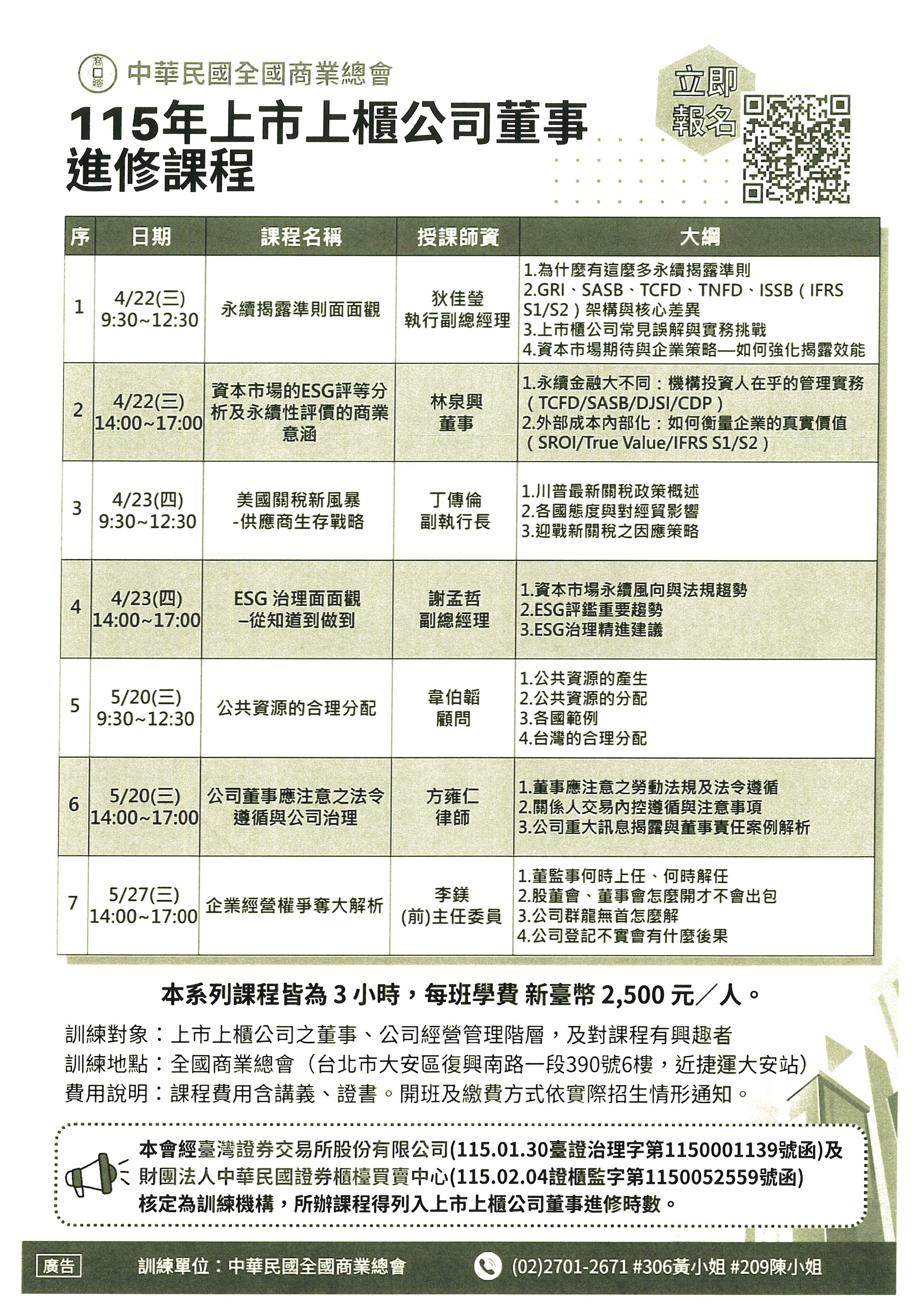中華民國全國商業總會~115年上市上櫃公司董事進修課程